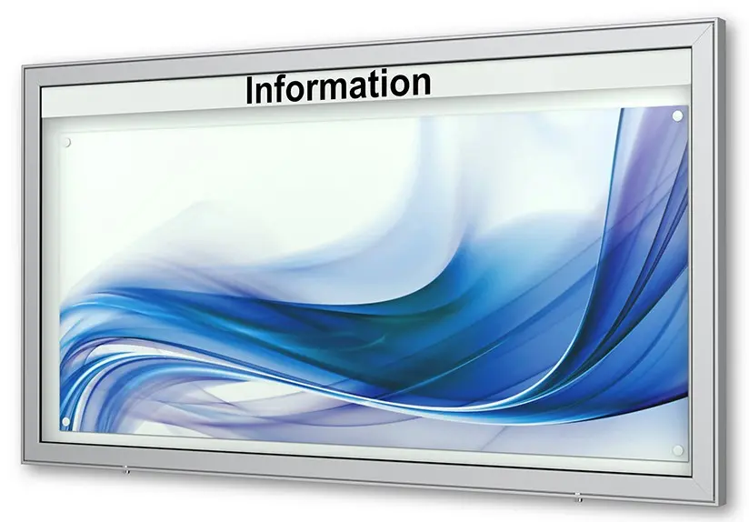 Merkmale Schaukasten: Klappflügel, LED-Beleuchtung, Wandmontage, abschliessbar, magnetisch, wetterfest