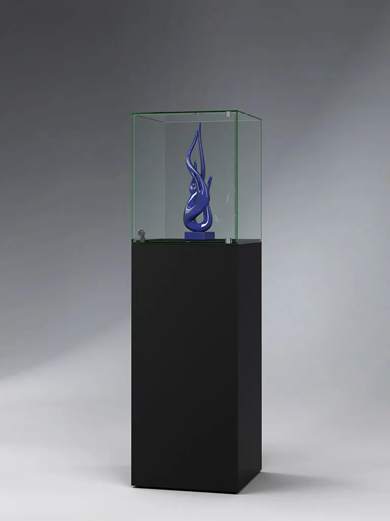 | Glasvitrinen: | Ganzglasvitrine, Glasvitrine, Haubenvitrine, Museumsvitrine, Standvitrine, Säulenvitrine |